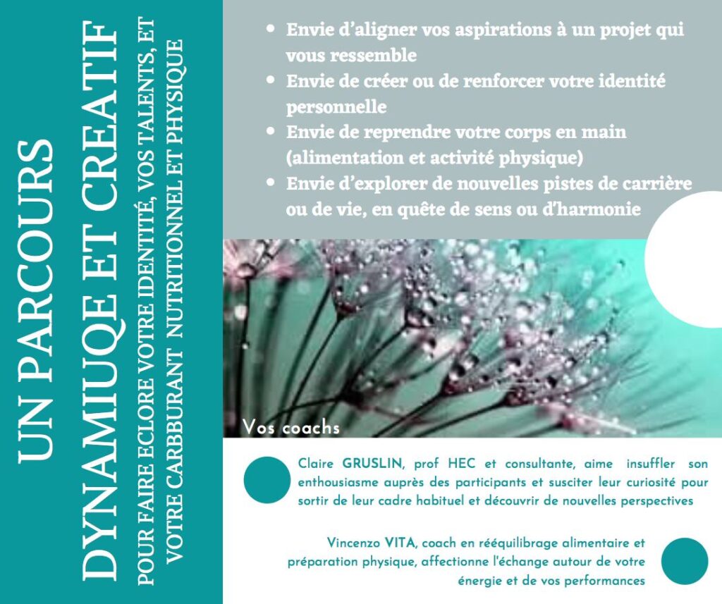 Que vous cherchiez à aligner vos aspirations à un projet qui vous ressemble, à explorer de nouvelles pistes de carrière, à reprendre votre corps en main (alimentation et/ou activité physique) ou même à ramener de l’harmonie dans votre vie.